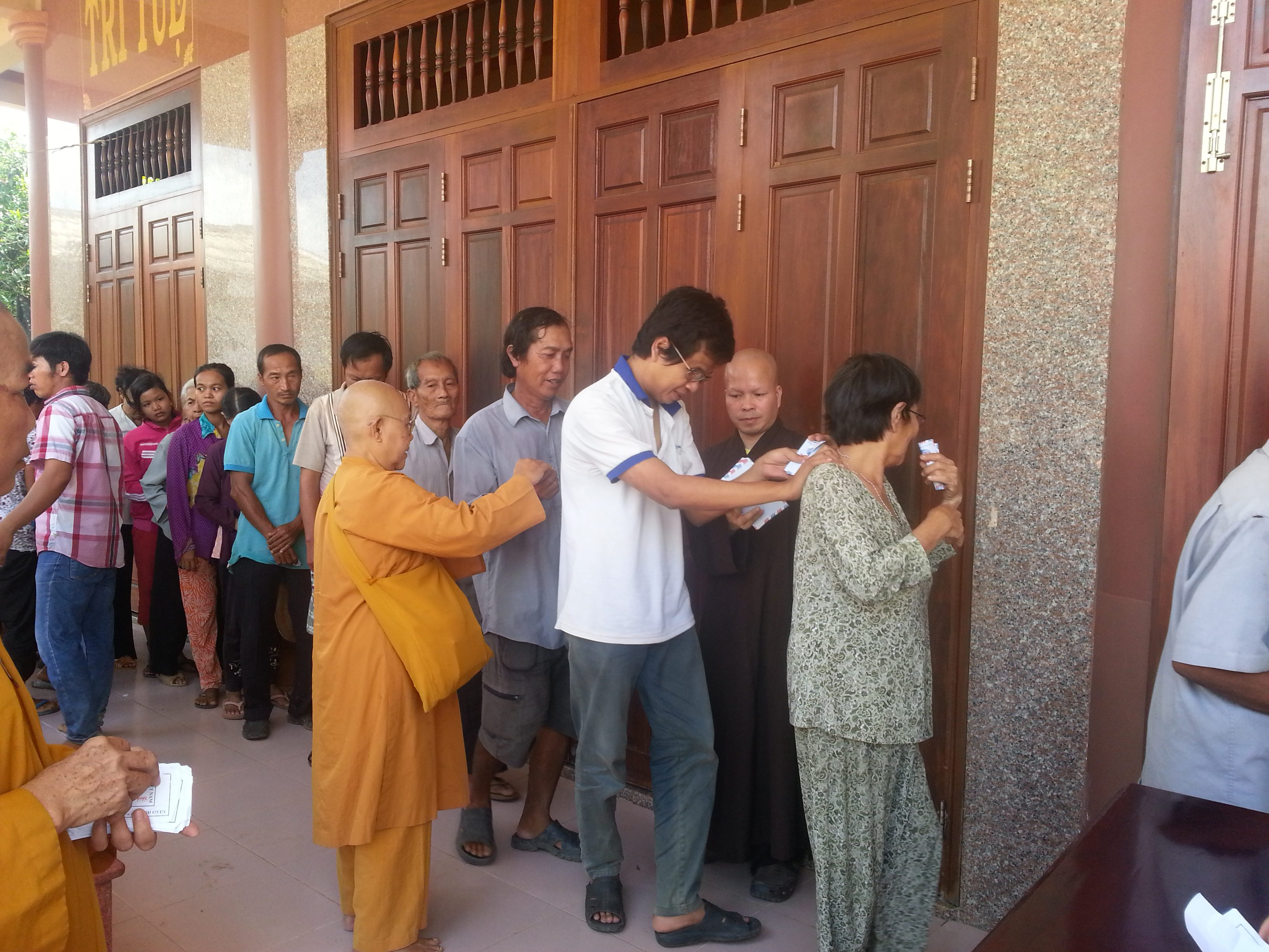 Ven. Bao Thanh came to Vinh Chau province to do charity to help the Blind village. There are hundred of blind people who live in Vinh Chau province in the south of Viet Nam. It is hard for them to take care of their live. There is no job that they could do for living. They most live by the well fare of the government and neighbors. To share part of that, Ven, Thich Bao Thanh on behalf of Xa Loi Charity was there in 2014, to offer food and money and some of the everyday use for them. He went there with the group of Nusn and members of Binh Duong Province.