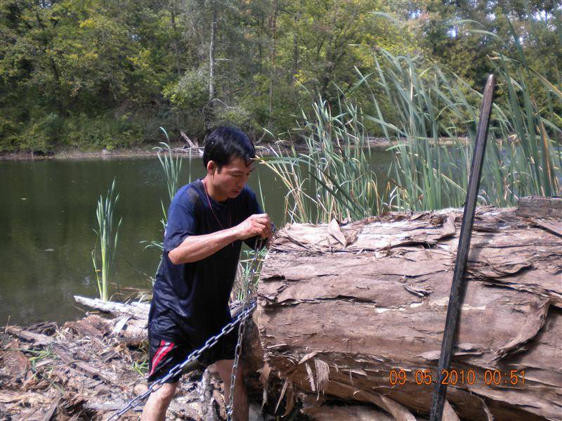 It was the summer time, we made a great effort to clean the Quanzing Lake. We had two small boats that we used to come out to the water and cleaned up all the death tree and tires floated on the top of water.