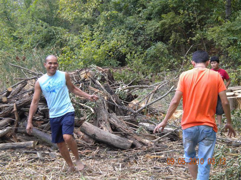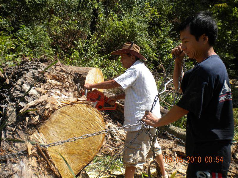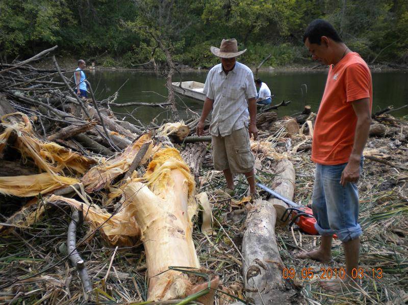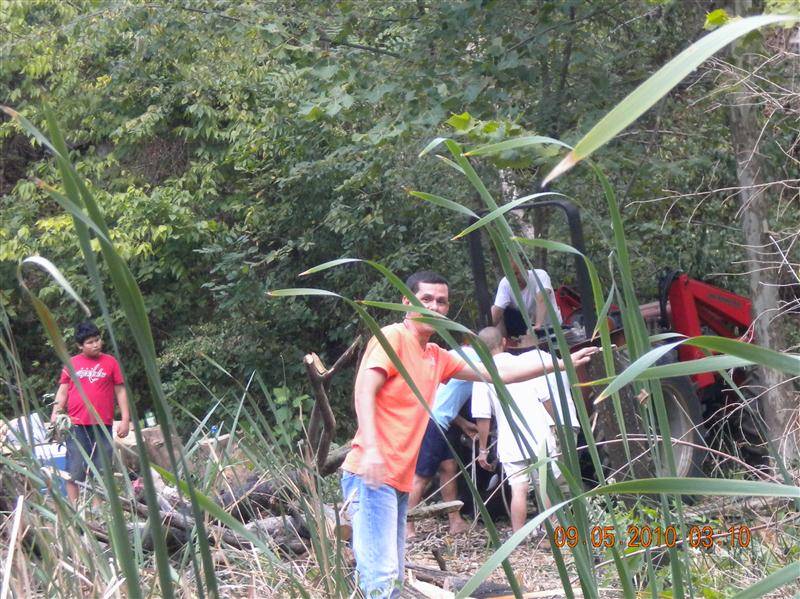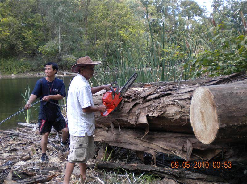 Mệt không? Vâng ai cũng mệt vì vừa phải chèo thuyền và kéo cây và trong hoàn cảnh như vậy nhưng ai cũng vui vẻ hết. Người thì bơi chèo thuyền ra giữa lòng hồ kéo cây, người thì cưa những cây ngả nghiêng ngay ở bờ.