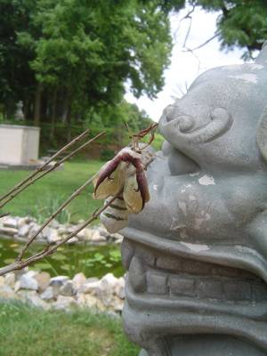 Khi mùa xuân năm 2011 trỗi mình khoe sắc, một chuyện lạ lùng đã xảy ra làm tăng thêm kinh nghiệm hiểu biết về thiên nhiên của chúng tôi. Chúng tôi được chứng kiến một con sâu rùng mình chuyển hoá thành bướm. Kiến thức này, ai cũng biết trên ghế học đường và từ sách sinh vật, nhưng tận mắt chứng kiến , thì đây là lần đầu tiên trong đời của chúng tôi, đặc biệt là ở ngay trước cửa chánh điện.