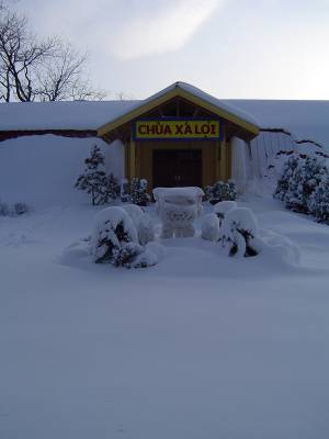 Hơn mười ngày tuyết phủ kín, ở trong không thẻ ra ngoài và ở ngoài cũng không thể vào được. Thầy Bảo Thành và Sư Cô đã phải ăn mì gói với ít nước phật tử để lại trong tuần trước. Vâng, Thầy và Cô đã vượt qua một sự thử thách thật lớn trong mùa bão tuyết năm này.