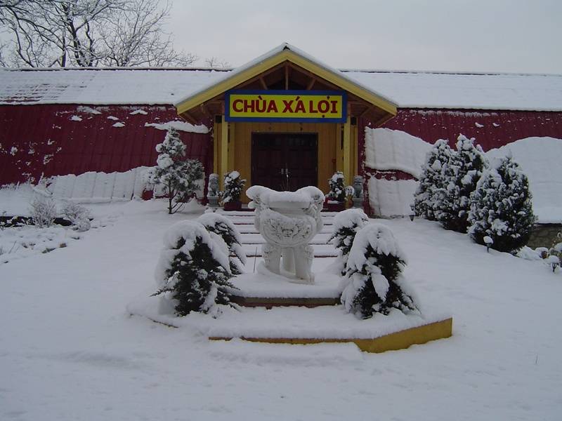 In the North East of the United State of America, winter is very cold. Winter of 2010, snow was about more than four feet and under freezer temperature. The temple at that time was still remain as the barn. There was some renovation just has done. But there was no heater, kitchen, restroom and no water at all. However, Ven. Bao Thanh and Su Co Bao Co have made it through the winter of that year.