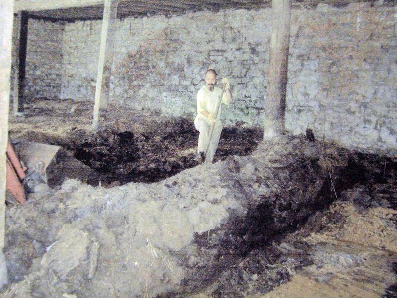 Tầng dưới của chuồng bò cột kèo đổ nát, phân bò cao cả thước. Đây là nơi để cho bò trú ẩn khi mưa gió và bão tuyết.