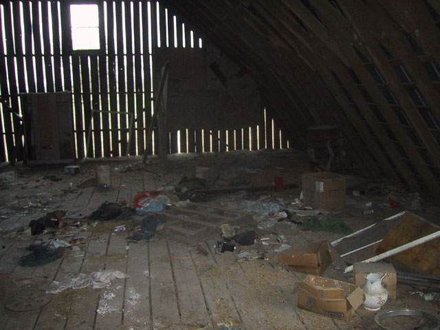 Nông trại này bị bỏ hoang đã lâu; nó chỉ có một cái chuồng bò thật cũ kỹ siêu vẹo. Bên trên chuồng bò người ta dùng chứa cỏ.